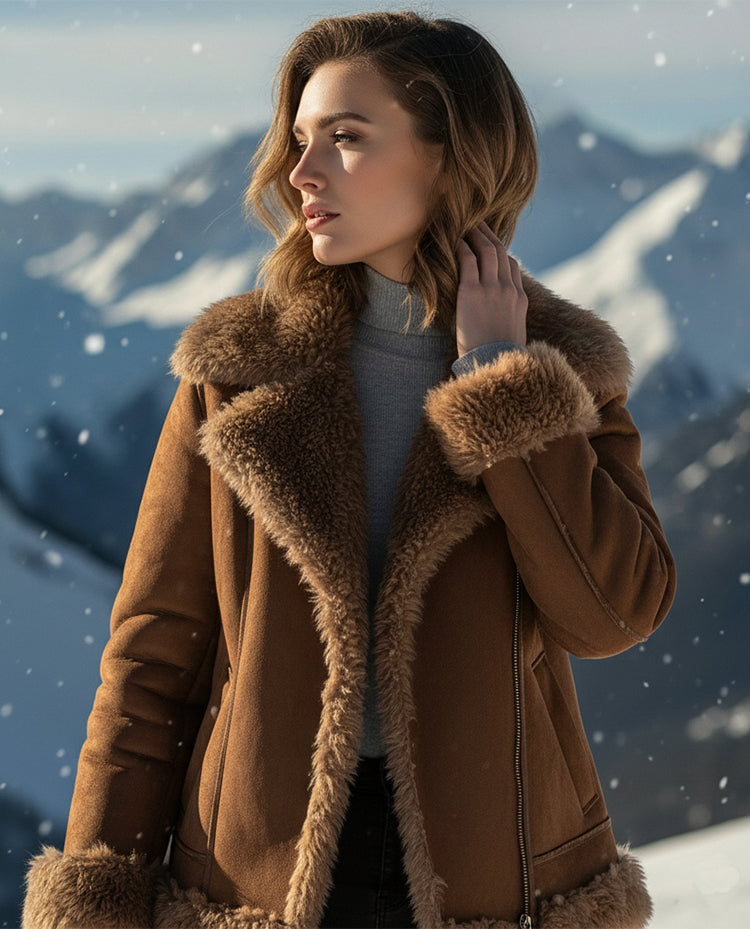 FJM003 B3 RAF Hooded Brown Shearling Fur Lined Genuine Leather Vest – Winter
