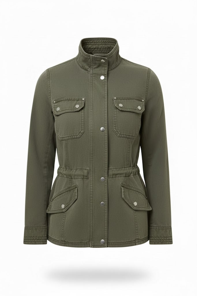 This chic utility jacket combines a flattering silhouette with multiple functional pockets, making it perfect for travel, casual outings, layering, and transitional weather. Its khaki-green tone adds a timeless, versatile charm that pairs effortlessly with jeans, leggings, boots, and streetwear fits.