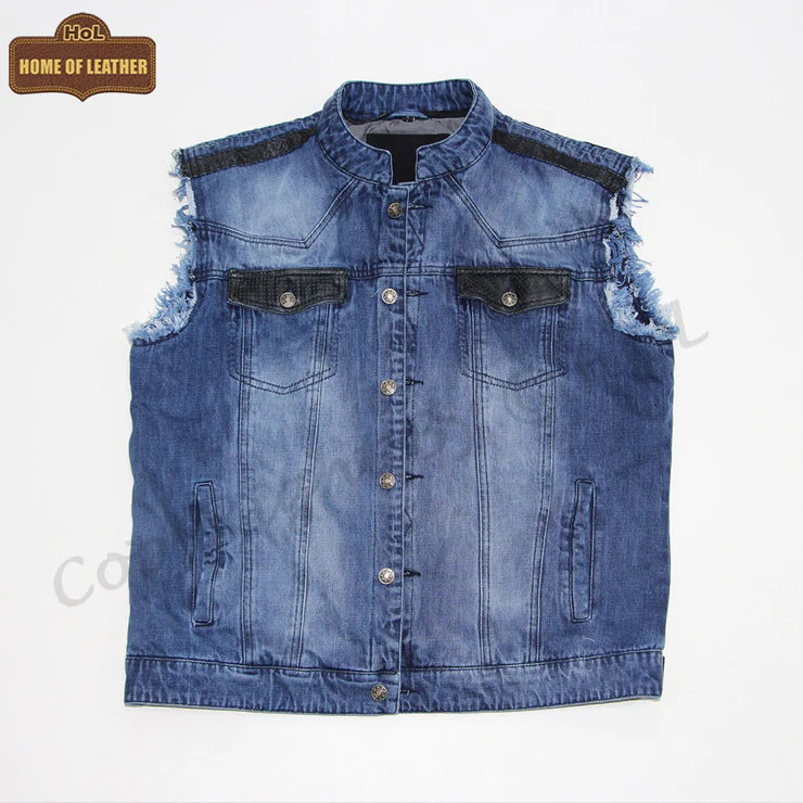 Upgrade your layering game with the House of Leather Men’s Sleeveless Hooded Vest in striking blue denim finish. This versatile piece features a detachable hood, sleeveless cut for modern edge, and a clean zip-front design — perfect for street style, transitional weather, or adding an extra layer of attitude to your outfit.