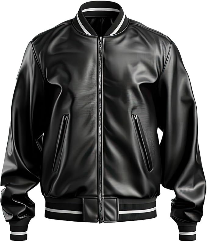 This premium black varsity jacket blends modern streetwear style with a clean, sophisticated finish. Designed with a smooth genuine-leather exterior and soft inner lining, it delivers exceptional comfort and a sleek silhouette. The baseball collar, rib-knitted edges, and zip-up front create a perfect balance of sporty and minimal—ideal for everyday wear, casual outfits, or bold fashion looks.